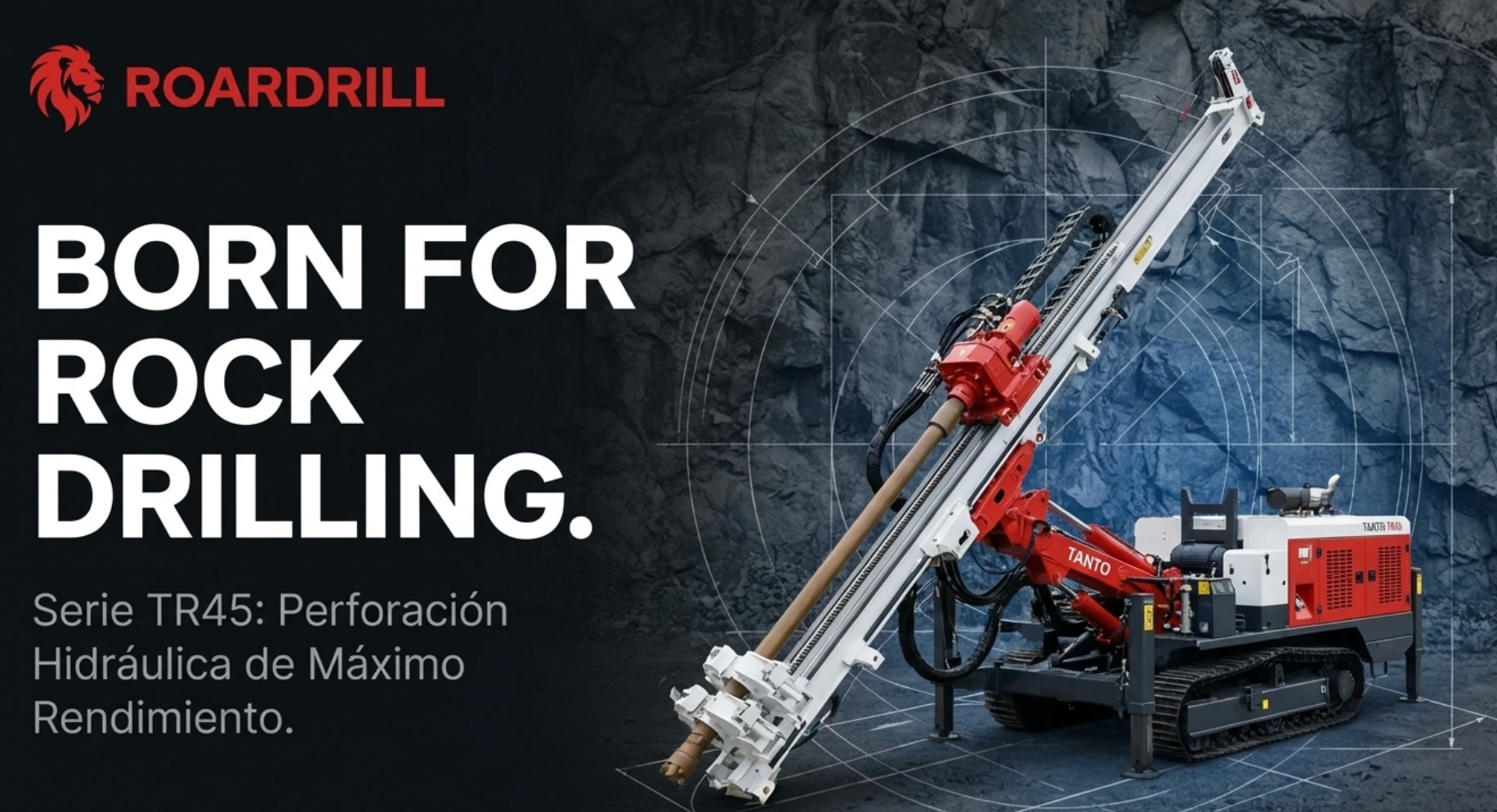 ROARDRILL TR45 Series: Potencia Global Sincronizada para la Perforación de RocaBajo la misión institucional "Born for Rock Drilling" (Nacida para la perforación de roca), la serie de perforadoras hidráulicas TR45 representa la máxima evolución en ingeniería de precisión y versatilidad operativa12. Esta plataforma ha sido diseñada para dominar los entornos geológicos más complejos, siendo la solución definitiva para minería a cielo abierto, proyectos de infraestructura municipal y estabilización de taludes1more_horiz.Nuestra propuesta de "Solución Total" se fundamenta en la integración de componentes de élite mundial: el "corazón" de potencia (motores Caterpillar o Cummins) y el flujo de aire ininterrumpido de los compresores Sullivan-Palatek (EE. UU.)5more_horiz. Gracias a innovaciones como su pluma plegable de tercera generación y su sistema automático de cambio de varillas, la TR45 garantiza una estabilidad excepcional y la capacidad de perforar hasta 25 metros de profundidad con la máxima seguridad y eficiencia.