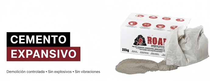 El ROAR (Agente de Demolición Silenciosa) se emplea en la industria de la construcción y demolición para fracturar rocas, hormigón y otros materiales sin generar vibraciones, proyectiles, polvo o gases nocivos.